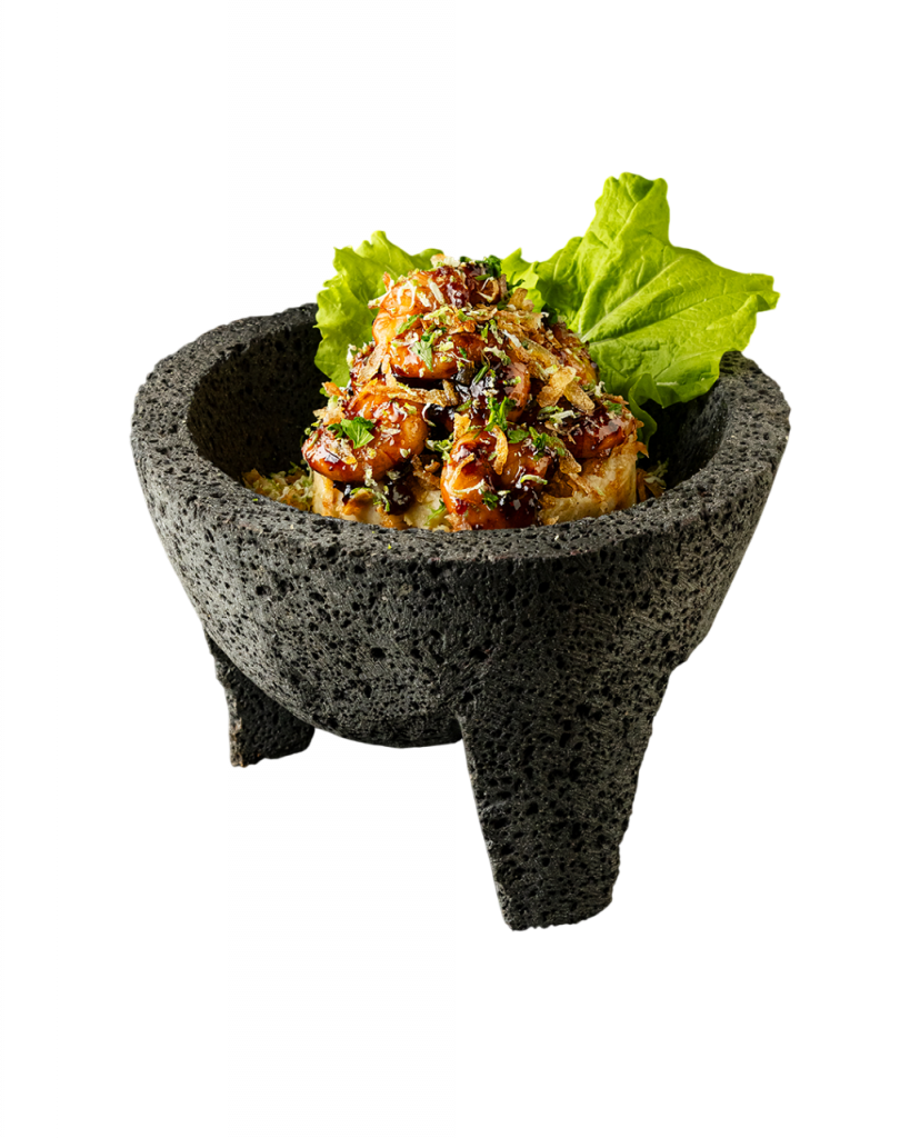 - Nigiri crujiente de pulpo/ camarones/ vegetales con chutney de tamarindo